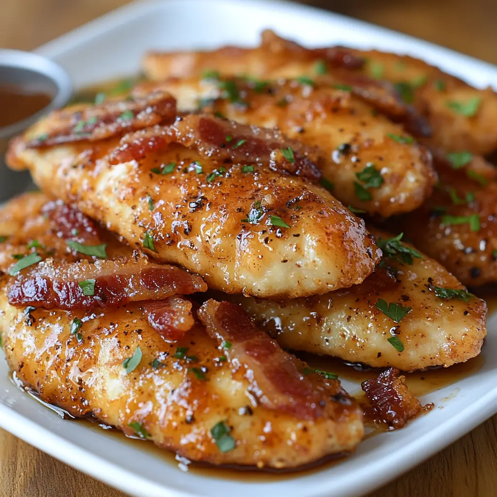 Serve the Bacon Brown Sugar Chicken Tenders on a large platter garnished with fresh parsley or chives. Pair them with a side of dipping sauces like honey mustard, ranch, or barbecue for a fun and interactive dining experience.