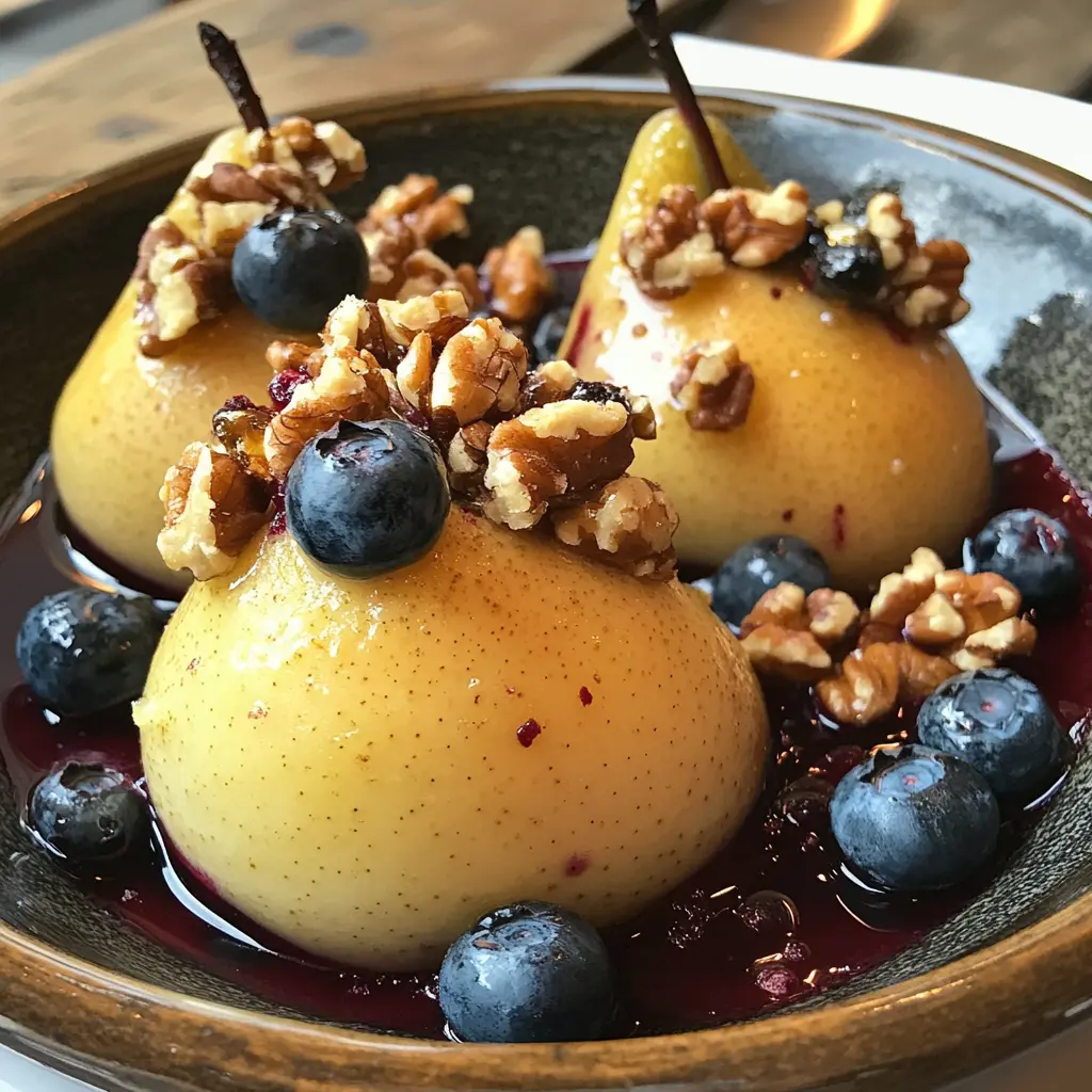 Baked Pears with Berries, Honey, Walnuts & Blue Cheese can be served warm or at room temperature. They make for a delightful appetizer at a dinner party or a comforting dessert after a hearty meal. Pair them with a scoop of vanilla ice cream or a dollop of whipped cream for an indulgent treat. A glass of dessert wine or a light, fruity white wine complements this dish beautifully.
