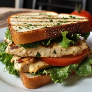 A delicious and satisfying sandwich featuring juicy grilled chicken, fresh lettuce and tomato, and flavorful garlic butter, all nestled between …