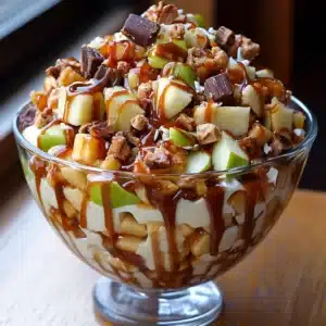 Description of this recipeA delightful medley of sweet and crunchy textures, this Caramel Apple Snickers Salad presents an extraordinary dessert …