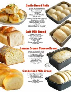 1. Garlic Bread Rolls Ingredients:3 cups all-purpose flour2¼ tsp active dry yeast (1 packet)1 cup warm milk (about 110°F)2 tbsp …