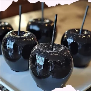 Description Wickedly Glossy Black Poison Candy Apples for Halloween Nights. These stunning black candy apples are the perfect spooky treat …