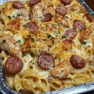 Short Description This Cowboy Butter Cheesy Chicken & Sausage Alfredo Bake is a hearty and flavorful dish that combines the …