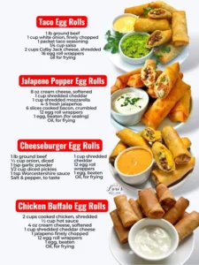 Description These Taco Egg Rolls are a fun and delicious twist on traditional tacos. Crispy egg roll wrappers are filled …