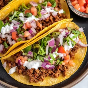 Description: Dive into taco perfection with this classic, easy-to-make recipe. Perfectly seasoned ground beef, customizable toppings, and warm tortillas combine …