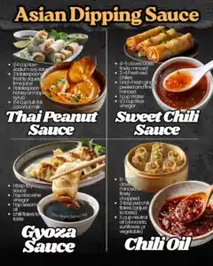 DescriptionThese easy Asian dipping sauce recipes are perfect for dumplings, spring rolls, noodles, and appetizers. Learn how to make Thai …