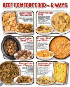 DescriptionThese beef comfort food recipes are perfect for cozy dinners and family meals. This collection includes cheesy beef quesadillas, cheeseburger …