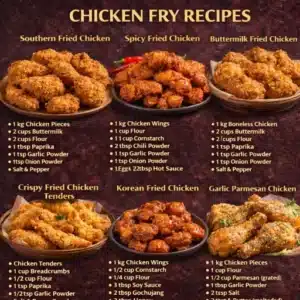 1. Southern Fried Chicken Ingredients• 1 kg Chicken Pieces• 2 cups Buttermilk• 2 cups Flour• 1 tbsp Paprika• 1 tsp …