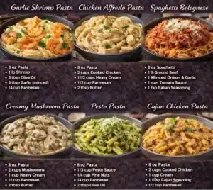 Can’t decide what to make for dinner? This easy pasta recipe roundup features garlic shrimp pasta, chicken alfredo, spaghetti bolognese, creamy mushroom pasta, pesto pasta, and cajun chicken …