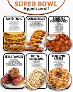 Hosting game day? These Super Bowl appetizer recipes are guaranteed crowd-pleasers! This ultimate party food roundup includes baked tacos, sausage boats, boneless buffalo chicken wings, Texas …