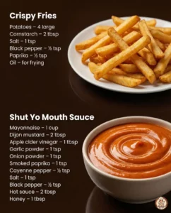 Crispy Fries Ingredients:Potatoes – 4 largeCornstarch – 2 tbspSalt – 1 tsp (or to taste)Black pepper – ½ tspPaprika – …