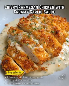 Ingredients : For the Crispy Parmesan Chicken:• 2 boneless, skinless chicken breasts (cut in half lengthwise to make 4 thin …