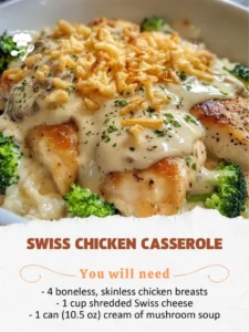 This Swiss Chicken Casserole is creamy, cheesy, and satisfying the perfect comfort dish that brings together tender chicken, Swiss cheese, …