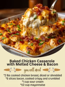 Baked Chicken Casserole with Melted Cheese & Bacon