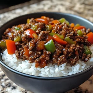 Description of this recipeThe Beef and Pepper Rice Bowl is a vibrant and hearty dish that combines savory ground beef …