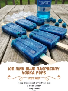 Description These vibrant Ice Rink Blue Raspberry Vodka Pops are the perfect boozy treat to cool down on a hot …