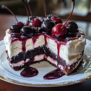 This Cherry Chocolate Ice Cream Cake is a delightful dessert that combines the rich flavors of chocolate and the tart …