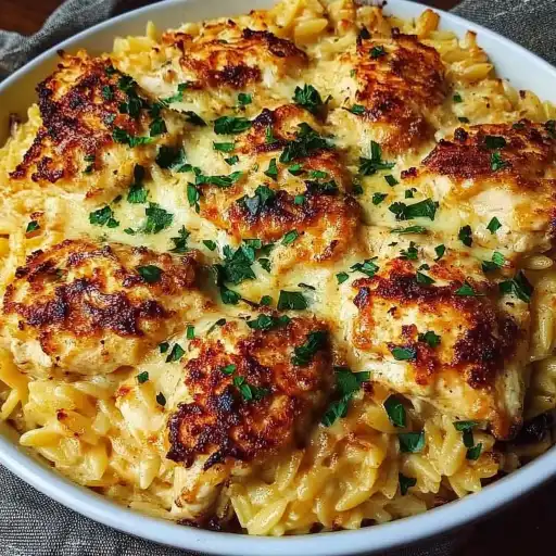 This Cheesy Cajun Cowboy Butter Chicken Orzo Bake is a flavor-packed, comforting dish that combines tender chicken, creamy orzo pasta, and a zesty blend of Cajun spices and cowboy butter. The addition of ranch dressing and a generous topping of melted cheeses elevates this bake to a new level of deliciousness. Perfect for a weeknight dinner or a potluck gathering, this recipe is sure to be a crowd-pleaser.