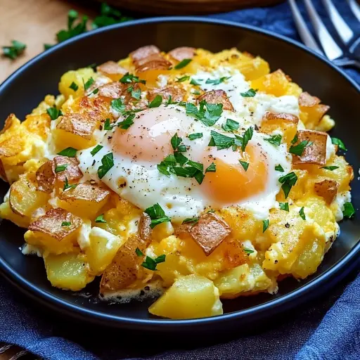 The Cheesy Potato Egg Scramble is a delightful and versatile dish that’s perfect for any meal. Its ease of preparation, customizable nature, and comforting flavors make it a winning recipe for busy individuals and families alike. Whether you’re looking for a quick breakfast, a hearty brunch, or a simple dinner, this scramble will surely satisfy your cravings. Gather your ingredients, follow the simple steps, and enjoy a warm, cheesy, and utterly delicious Cheesy Potato Egg Scramble!