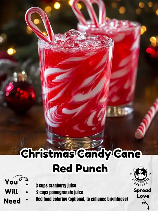 This Christmas Candy Cane Red Punch is a festive and flavorful beverage perfect for holiday gatherings. Combining the tartness of cranberry and pomegranate juice with the tropical sweetness of pineapple, this punch offers a delightful balance of flavors. The peppermint extract adds a refreshing twist, while the coconut milk creates beautiful white swirls reminiscent of candy canes. This recipe is easy to prepare and visually stunning, making it a crowd-pleaser for both kids and adults.