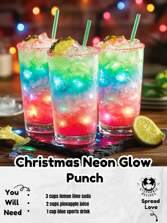 The Christmas Neon Glow Punch is more than just a drink; it’s an experience. Its vibrant colors and mesmerizing glow make it a standout addition to any holiday celebration. Easy to prepare and delightfully delicious, this punch is sure to become a new family favorite. Enjoy the magic and spread the holiday cheer with every sip!