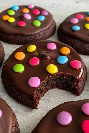 These cosmic brownie cookies are rich, fudgy, and topped with a smooth chocolate ganache and colourful sprinkles. Like a fudgy brownie in cookie form!
