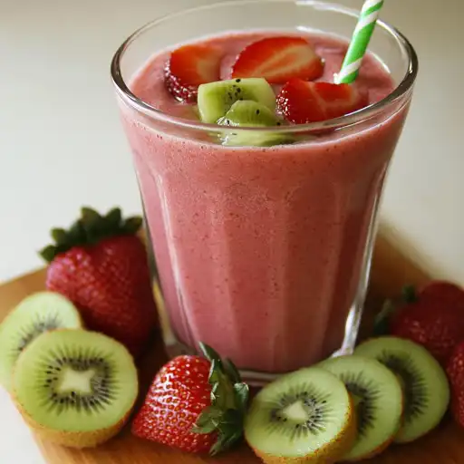A refreshing and vibrant smoothie packed with nutrients, perfect for a quick breakfast, snack, or post-workout boost. The combination of sweet strawberries and tangy kiwi, blended with creamy banana and yogurt, creates a delightful and healthy treat.