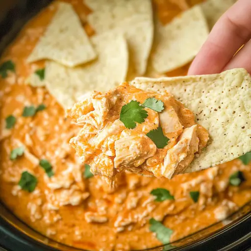 This Crockpot Buffalo Chicken Dip is a game-changer because it’s incredibly easy, requires minimal effort, and delivers maximum flavor. The slow cooker does all the work, allowing you to set it and forget it. The combination of creamy, cheesy, spicy, and savory flavors is simply irresistible. It’s the ultimate crowd-pleaser that everyone will devour. Plus, it’s easily customizable – you can adjust the amount of buffalo sauce to control the heat level, add other cheeses like Monterey Jack or Pepper Jack for extra flavor, or include vegetables like chopped celery or green bell peppers for added texture and nutrients. You can also use leftover chicken to make this recipe extra convenient. Its also great for different diets, gluten-free, low-carb, or keto by simply using the right ingredients.