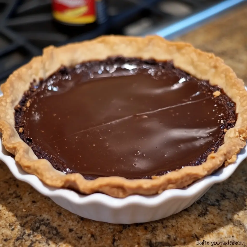 Pour the chocolate filling into the prepared crust (or directly into a greased pie dish if you’re skipping the crust). Spread the filling evenly. Bake in the preheated oven for 25-30 minutes, or until the center is set and the top looks slightly cracked. Once baked, remove the pie from the oven and allow it to cool slightly before slicing.