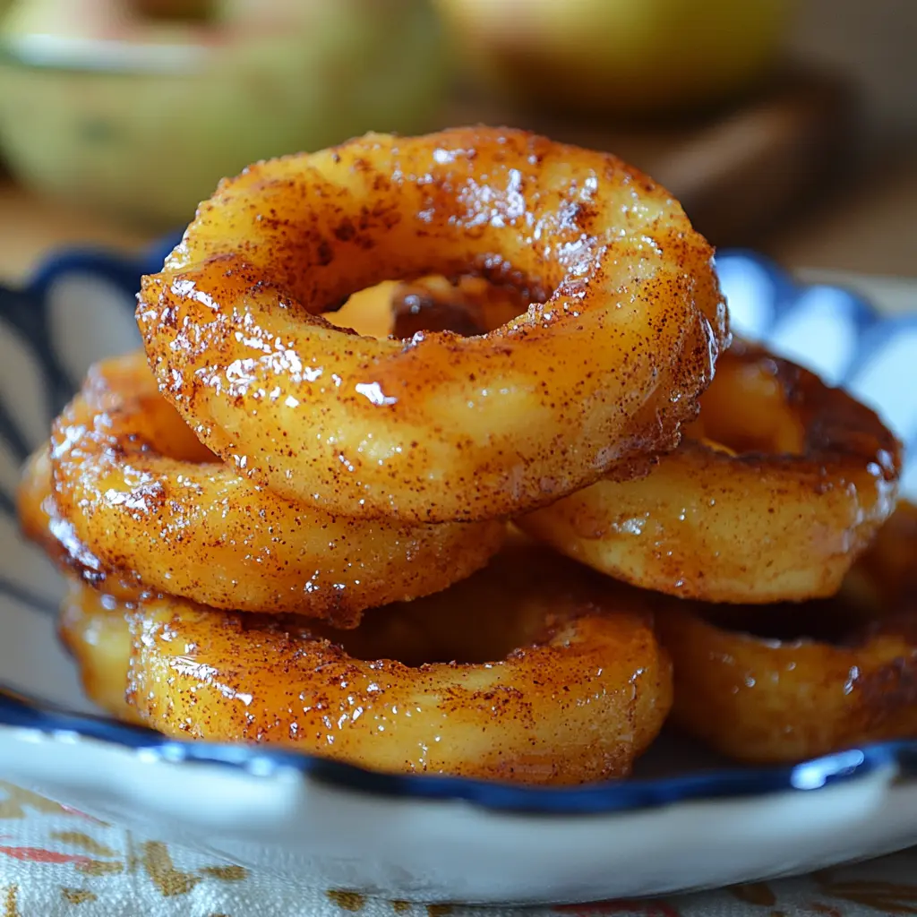 A2: You can bake the apple rings instead of frying them. Simply coat them in the batter and place them on a baking sheet lined with parchment paper, then bake at 375°F (190°C) for about 20-25 minutes, flipping halfway through.