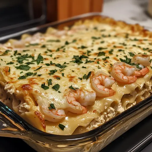 - Impressive Presentation: The layers of cheesy goodness, vibrant shrimp, and golden-brown topping make this lasagna a stunning dish to serve.