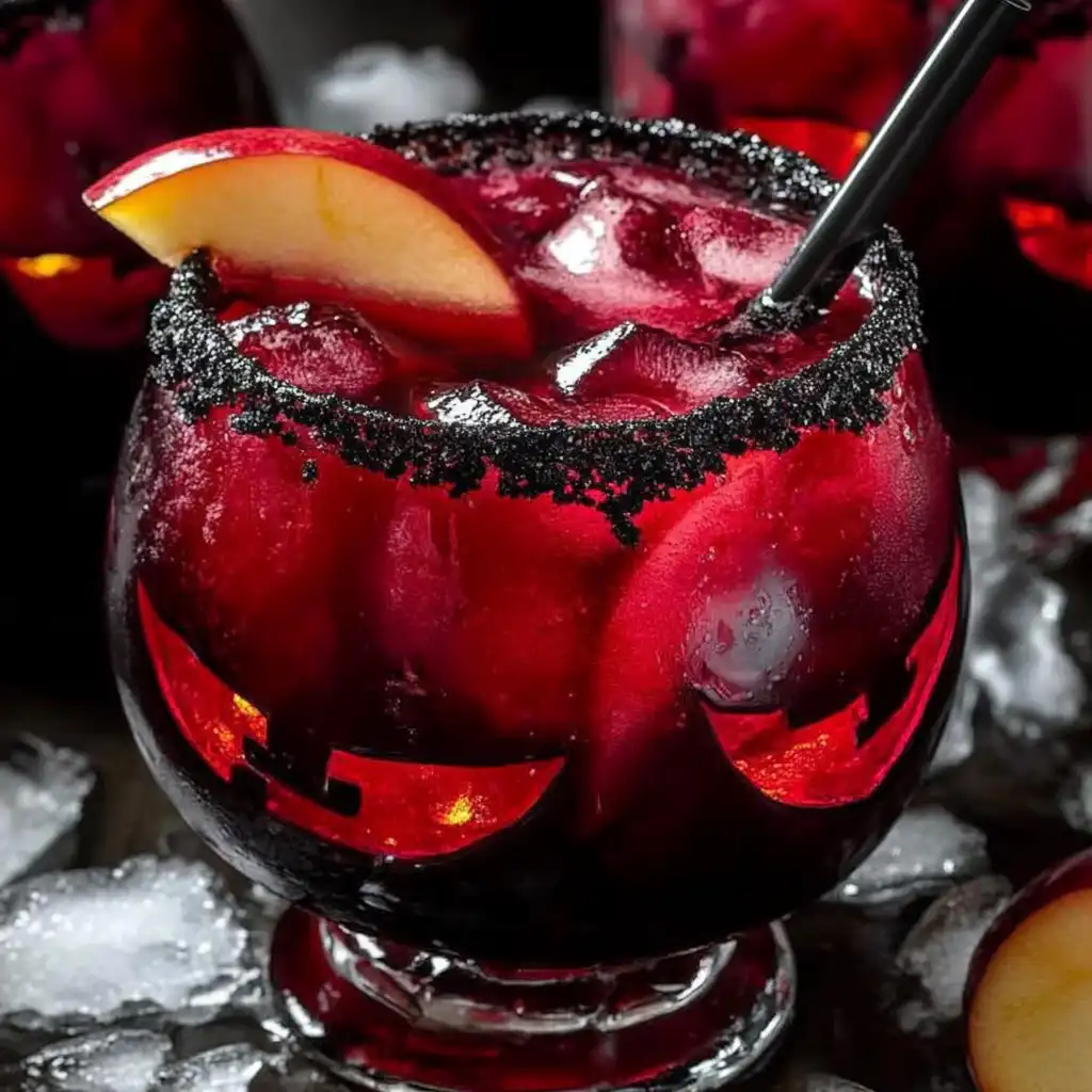 This Halloween Poison Apple Punch is a wickedly delicious and visually stunning drink perfect for your spooky celebrations. Combining the crisp flavors of apple cider, cranberry juice, and pomegranate soda, this punch is both refreshing and festive. The black sugar-rimmed glasses and creepy gummy garnishes make it an unforgettable addition to your Halloween party.