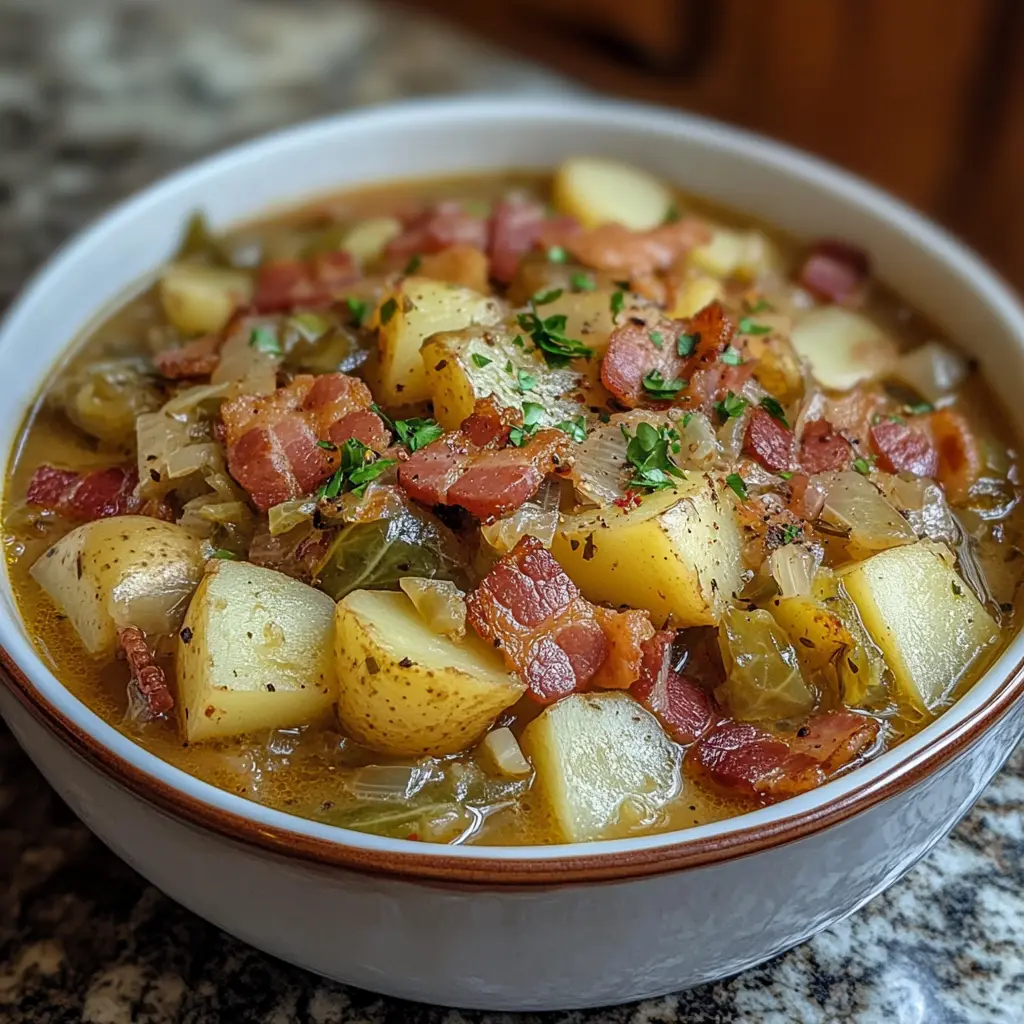 Irish Bacon, Cabbage, and Potato Soup is a hearty and comforting dish that embodies the rustic flavors of traditional Irish cuisine. This delightful soup combines the rich, savory taste of Irish bacon with the natural sweetness of cabbage and potatoes, creating a perfect blend of textures and flavors that warm the soul.
