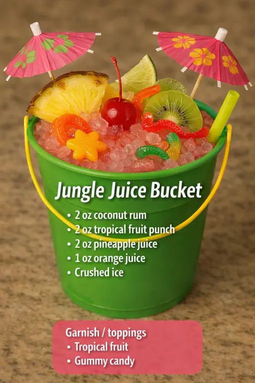 The Jungle Juice Bucket is more than just a drink; it’s an experience. With its vibrant colors, tropical flavors, and customizable garnishes, this single-serve cocktail is guaranteed to bring a smile to your face. Whether you’re looking for a fun party drink or a taste of paradise, the Jungle Juice Bucket is the perfect choice. Enjoy responsibly!