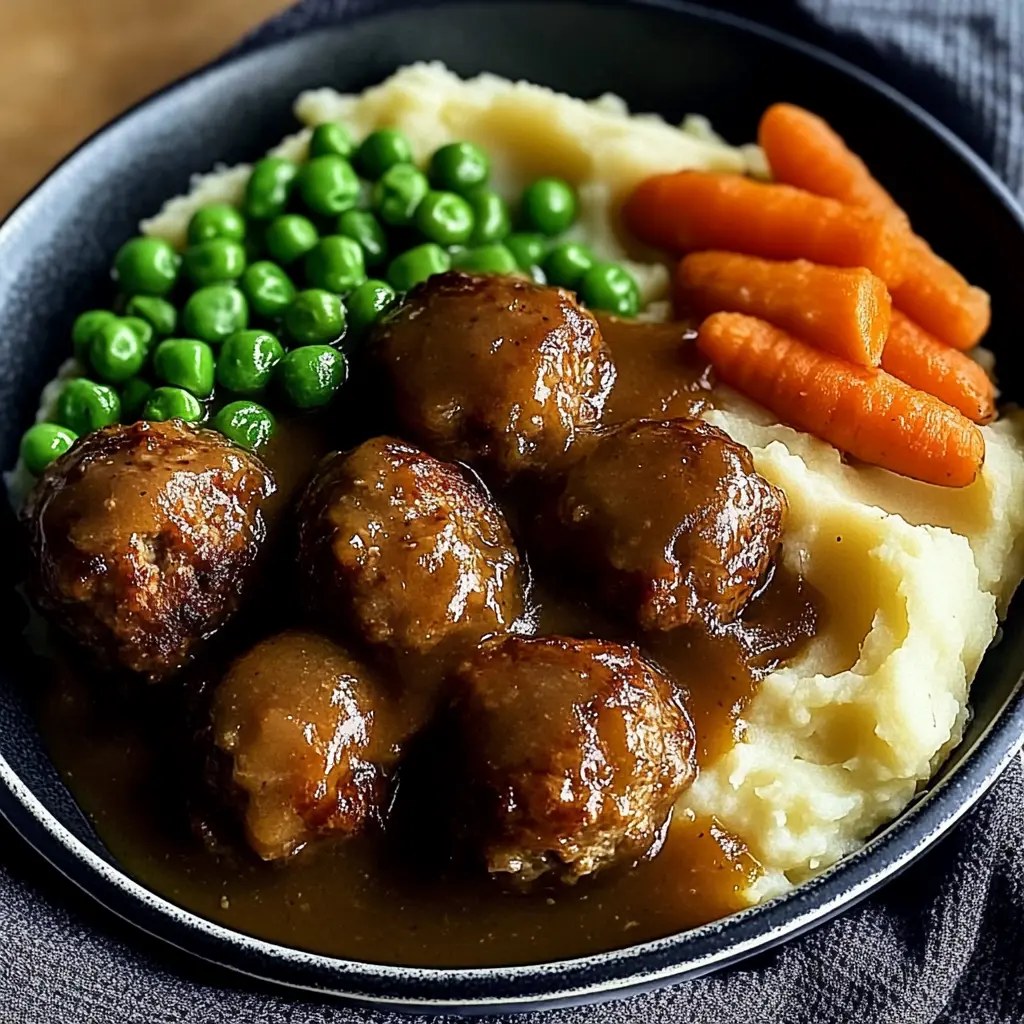 This classic comfort food recipe brings together tender, flavorful meatballs smothered in a rich gravy, creamy mashed potatoes, and simple, yet satisfying, carrots and peas. It’s a hearty and nostalgic meal perfect for a cozy night in, or a family dinner that everyone will enjoy.