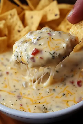 Transfer the cheese dip to a serving bowl and keep warm. Garnish with diced tomatoes, sliced jalapeños, and a sprinkle of fresh cilantro for added color and flavor. For a heartier version, stir in cooked ground beef or sausage. Serve immediately while hot with tortilla chips, warm tortillas, or alongside tacos, quesadillas, or grilled meats.