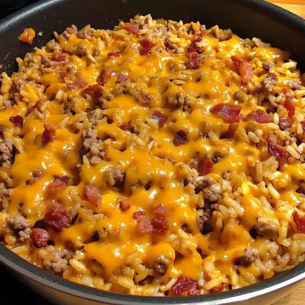 Step 10: Serve the One-Pot Bacon Cheeseburger Rice hot. Enjoy!