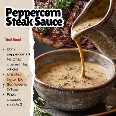 This Peppercorn Steak Sauce recipe is a must-have for any home cook looking to add a touch of gourmet flair to their meals. With its bold flavors, creamy texture, and quick preparation time, it’s the perfect finishing touch for a delicious steak dinner. Enjoy!