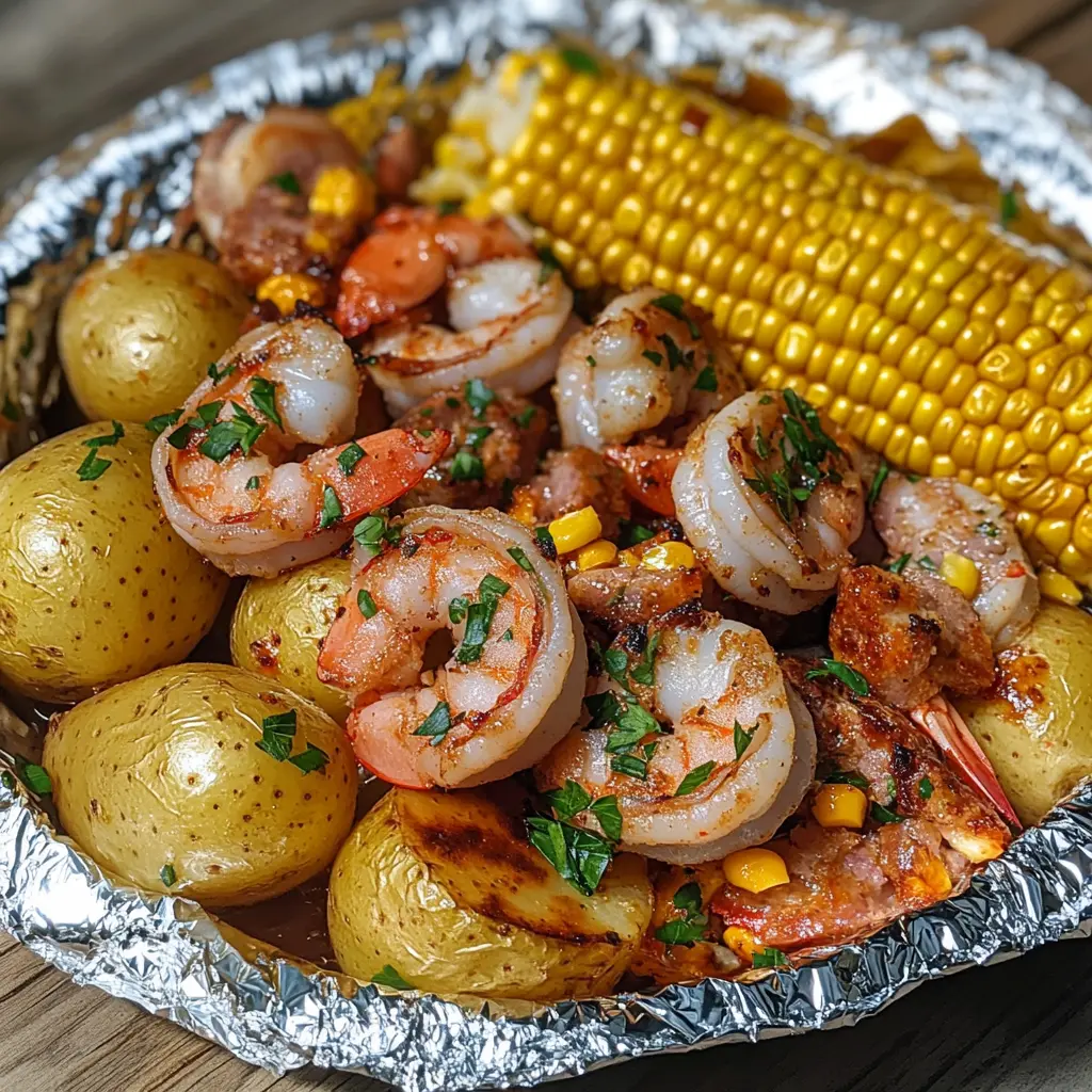 Shrimp, Corn, Potatoes, and Smoked Sausage Foil Pack