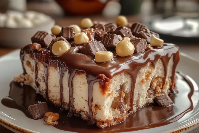 Indulge in the decadent delight of a Snickers Poke Cake, a heavenly dessert that combines the rich flavors of chocolate, caramel, peanuts, and cream. This cake is a true crowd-pleaser, perfect for any occasion where you want to impress your guests with a delicious treat.