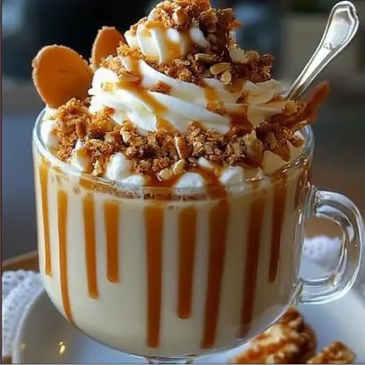 - Step 3: Pour milkshake into glass. Top generously with whipped cream, drizzle with more caramel, and sprinkle with toasted pecans and extra crumbs.