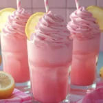 Step 4: Pour & Swirl: Divide the frappuccino mixture evenly between two tall glasses. As you pour, allow the pink and white colors to marble naturally, creating a visually appealing effect.