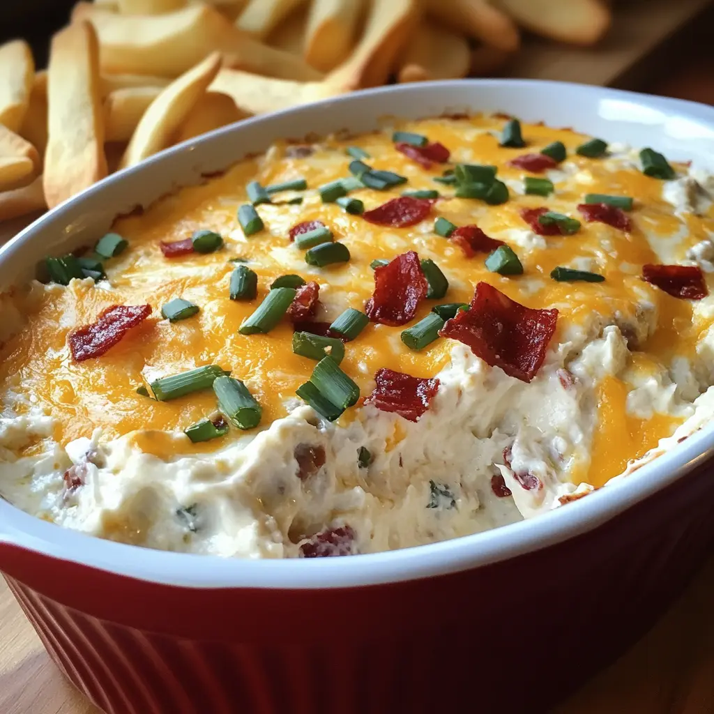 This Super Bowl Dip is a creamy, cheesy delight that combines the rich flavors of cream cheese, sour cream, and cheddar, all enhanced by crispy bacon and fresh green onions. Perfectly baked to a bubbling finish, this dip is a crowd-pleaser that will elevate any game day gathering.