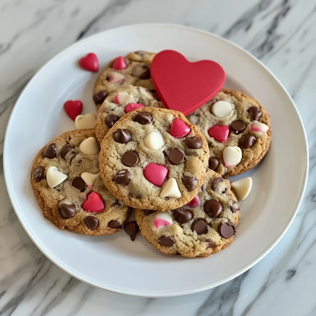 These Valentine’s Chocolate Chip Cookies are perfect on their own, but they can also be served with a glass of milk, a cup of coffee, or a warm mug of hot chocolate. For a fun twist, consider sandwiching two cookies with a scoop of ice cream for a delicious cookie ice cream sandwich. They also make a lovely gift when packaged in a decorative box or bag, perfect for sharing with friends, family, or that special someone.