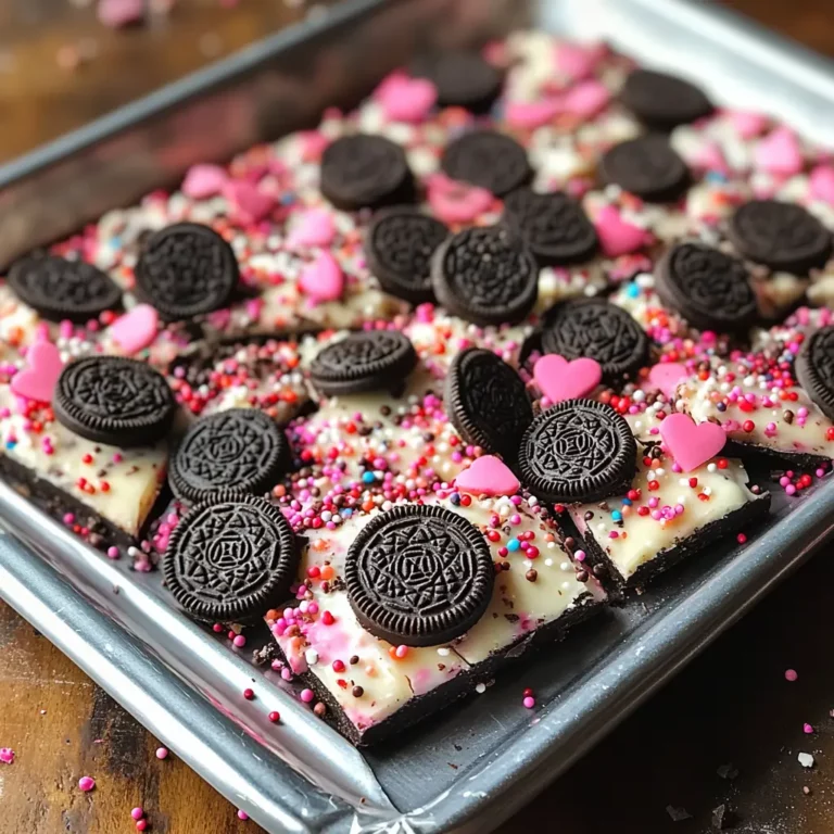 This Oreo cookie bark is not just easy to make but also incredibly satisfying to eat. The combination of textures—from the crunch of the Oreos to the smoothness of the chocolate coating—creates a delightful experience with every bite. Additionally, it’s a versatile recipe; you can customize it with your favorite flavors or seasonal decorations to suit any occasion. Whether you’re celebrating Valentine’s Day or just want a sweet treat, this bark is a crowd-pleaser that everyone will adore!